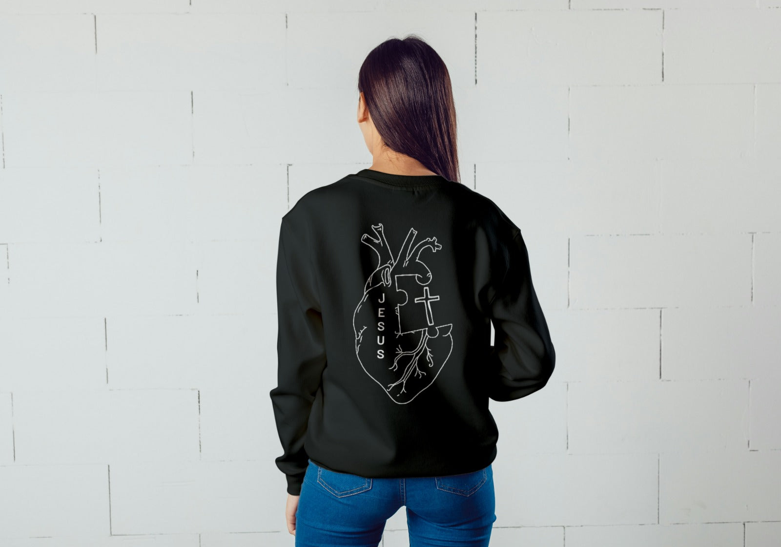 O coração simboliza o amor incondicional, o nome lembra quem nos sustém e a cruz aponta para o sacrifício que mudou tudo. Não é apenas uma peça de roupa — é uma declaração de fé vivida com simplicidade e verdade.